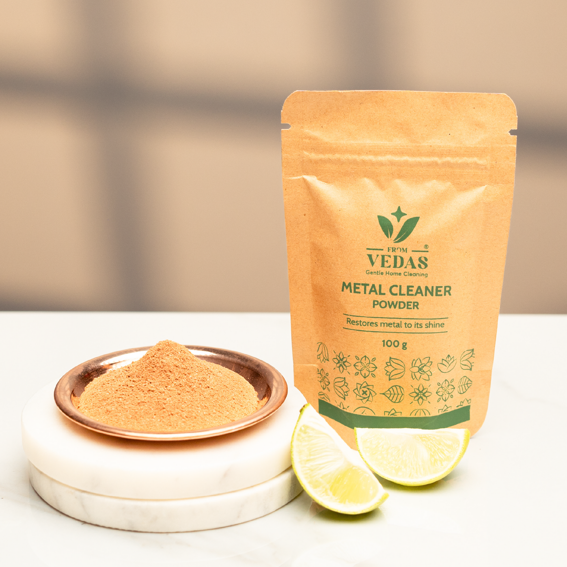 Restore the shine of your metalware with From Vedas Metal Cleaner Powder. Designed for effective cleaning of brass, copper, and stainless steel, this powerful yet gentle formula removes tarnish, stains, and grime, giving your metal items a brilliant polish.